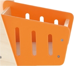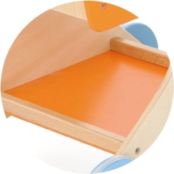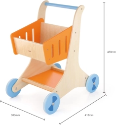 Gennemtænkte mål på ca. 41,8 × 48 × 30 cm sikrer behagelig skubning og rigelig plads i kurven. Den kvalitetsmæssige udførelse med kombination af naturtræ og klare farver stimulerer sanserne og gør vognen til et attraktivt indslag i børneværelset.