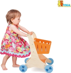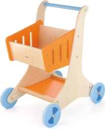Giv børnene glæden ved at udforske med en træ-indkøbsvogn, der er skabt til butikleg og transport af yndlingslegetøj. Takket være den robuste treramme, det behagelige greb og de fire jævne hjul er vognen stabil og let at manøvrere – selv for de mindste.