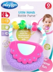 Oplev sjov med Playgro Min første rasle Taske. Denne rasle tilbyder: