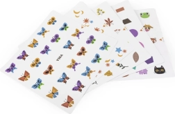 Farverige kort med motiver af former, frugter og dyr gør det muligt at tilpasse sværhedsgraden og lære børn at genkende og sortere.