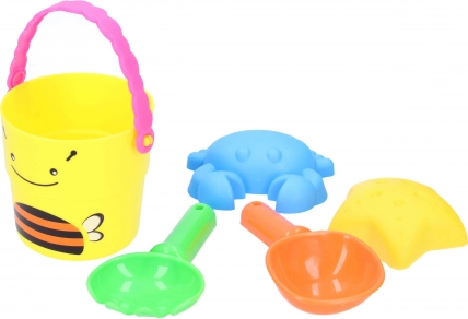 - Sættet indeholder en spand med glade dyremotiver, perfekt til at bære sand eller vand.