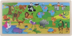 Dette kvalitets træpuslespil med safari-dyr giver børn glæde ved at opdage og lære. Med 96 solide brikker er puslespillet holdbart og let at håndtere, selv for mindre børn. De farverige illustrationer støtter genkendelse af former og farver og udvikler naturligt den visuelle sansning.
