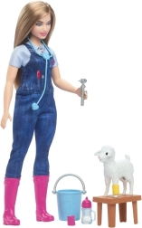 Barbie 65th Anniversary Careers dukken giver børn mulighed for at udforske forskellige erhverv og drømme. Dette dyrlægesæt til gården inkluderer en stilfuld dukke og ti tilbehør fokuseret på hendes arbejde.