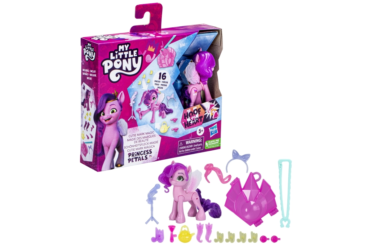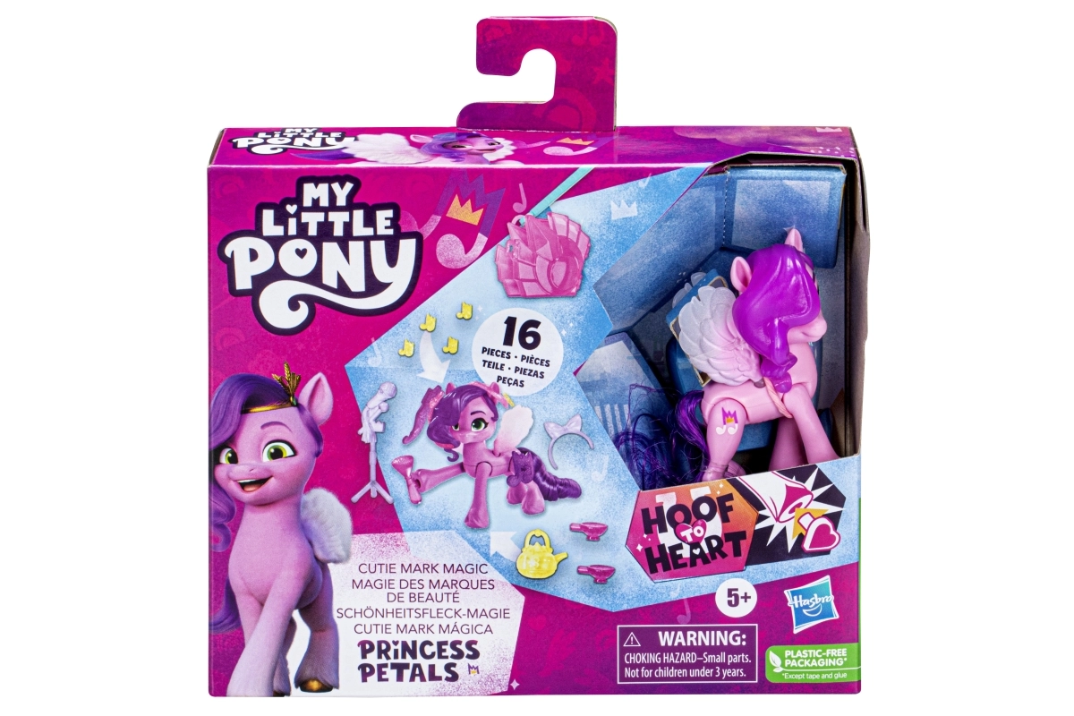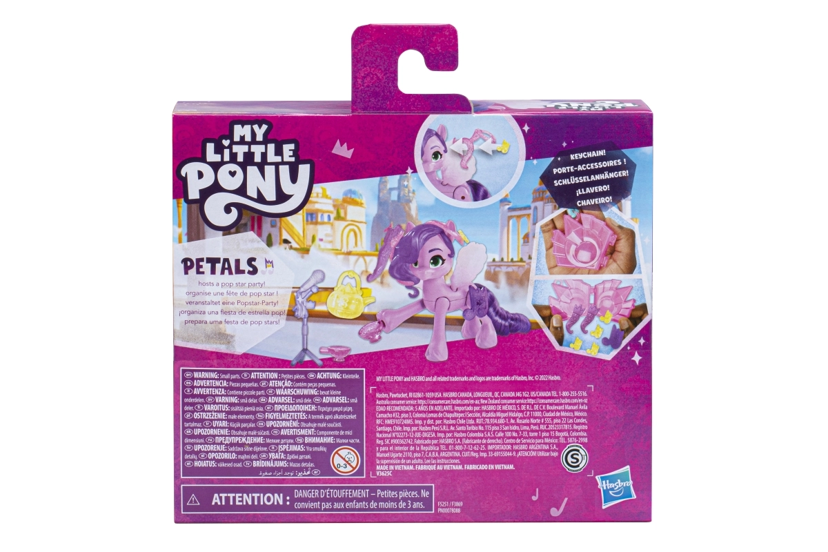 Pipp Petals er en stilfuld og talentfuld prinsesse-popstjerne inspireret af filmen My Little Pony: En ny generation og serien My Little Pony: Make Your Mark. Indeholder en 3-tommer positionerbar Pipp Petals-ponifigur med plastman og blød hale. Alder 5+