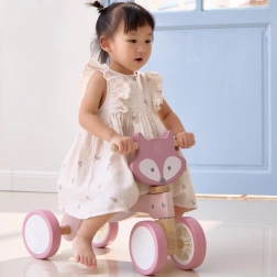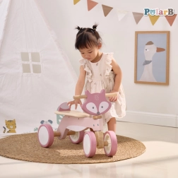 Sød træ-løbecykel i form af en ræv fra VIGA, serien POLARB, ideel til de mindste fra 12 måneder. Hjælper med at udvikle balance, koordinering og fin- og grovmotorik. Takket være de fire brede EVA-hjul er den ekstra stabil, har styrbegrænser for øget sikkerhed samt glatte, afrundede kanter. Det pastel-farvede look og den træbaserede konstruktion indbyder til aktiv leg både inde og ude.