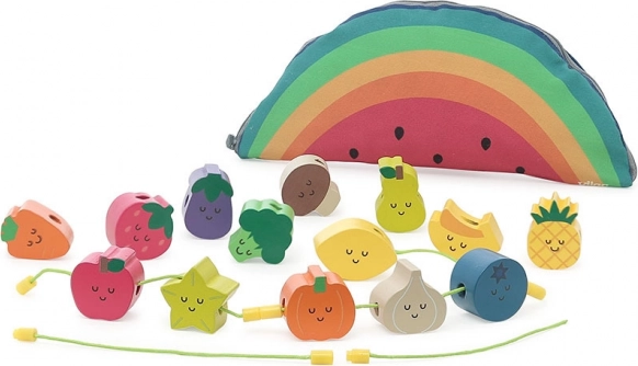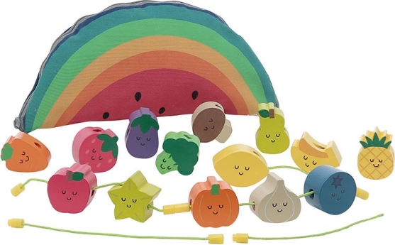 Træperler til påsætning, som er ideelle til små børn fra 18 måneder. Dette legetøj hjælper med at udvikle børns finmotorik og koordination. Smukke illustrationer af Andy Westface gør påsætning af disse perler sjovt. Børn lærer at genkende farver og former, samtidig med at de udvider deres ordforråd.