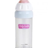 Det lyserøde-hvide design sammen med den praktiske måleskala gør flasken til et autentisk tilbehør til leg.