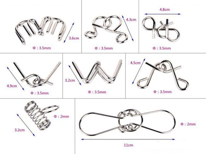 Dette alsidige sæt byder på en varieret blanding af sværhedsgrader, så alle finder deres udfordring – både begyndere og øvede. Puslespillene er lavet af kvalitetsmetal, hvilket betyder, at de ikke deformeres og tåler gentagen samling og adskillelse.