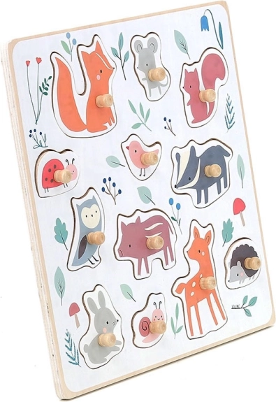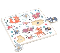 Dette kvalitets puslespil i træ med skovtema er skabt i samarbejde med illustrator Sarah Betz og giver børn glæden ved at udforske. Farvede prikker på pladen viser blidt, hvor hver brik hører til, og støtter koncentration og logisk tænkning. Med de robuste træknopper træner børn korrekt gribeteknik og udvikler finmotorikken.