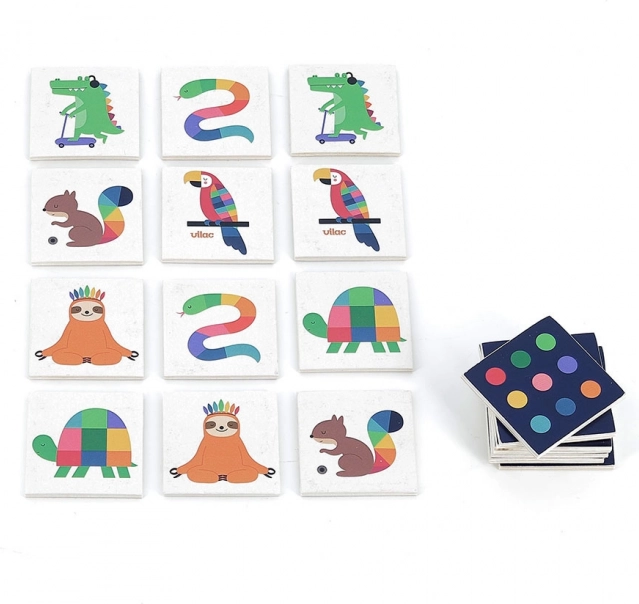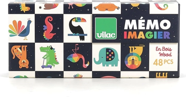 Opdag magien i en farverig verden med sættet træ-memo fra Vilac. Dig venter 48 brikker med søde dyr i design af Andy Westface, som udvikler børns hukommelse, opmærksomhed og ordforråd allerede fra 2 år. Brikkerne er behageligt store, holdbare og lette at holde for små hænder.