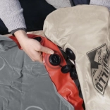 Den praktiske AirCinch pumpepose tilsluttes ventilen, du fanger luft og presser posen for at fylde madrassen. Cirka 90 sekunder og ~12 tryk er nok til at opnå den ønskede fasthed.