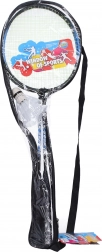 Komplet badmintonsæt, ideelt til rekreativt spil og begyndere. Pakken indeholder 2 lette ketchere med en længde på 63 cm og 2 bolde til at komme i gang med spillet med det samme i haven, på banen eller i ferien.