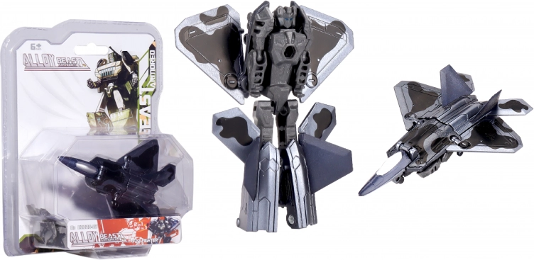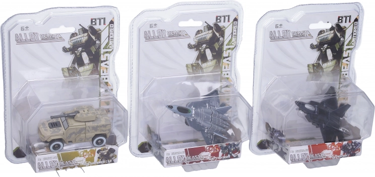 Underholdende metal bil-robot med en længde på 11 cm, som vil glæde små fans af militærteknik. Fås i 4 varianter – lys jagerfly, mørk jagerfly, tank og militært køretøj. Det holdbare metaldesign sikrer lang levetid og fantastisk legeglæde.