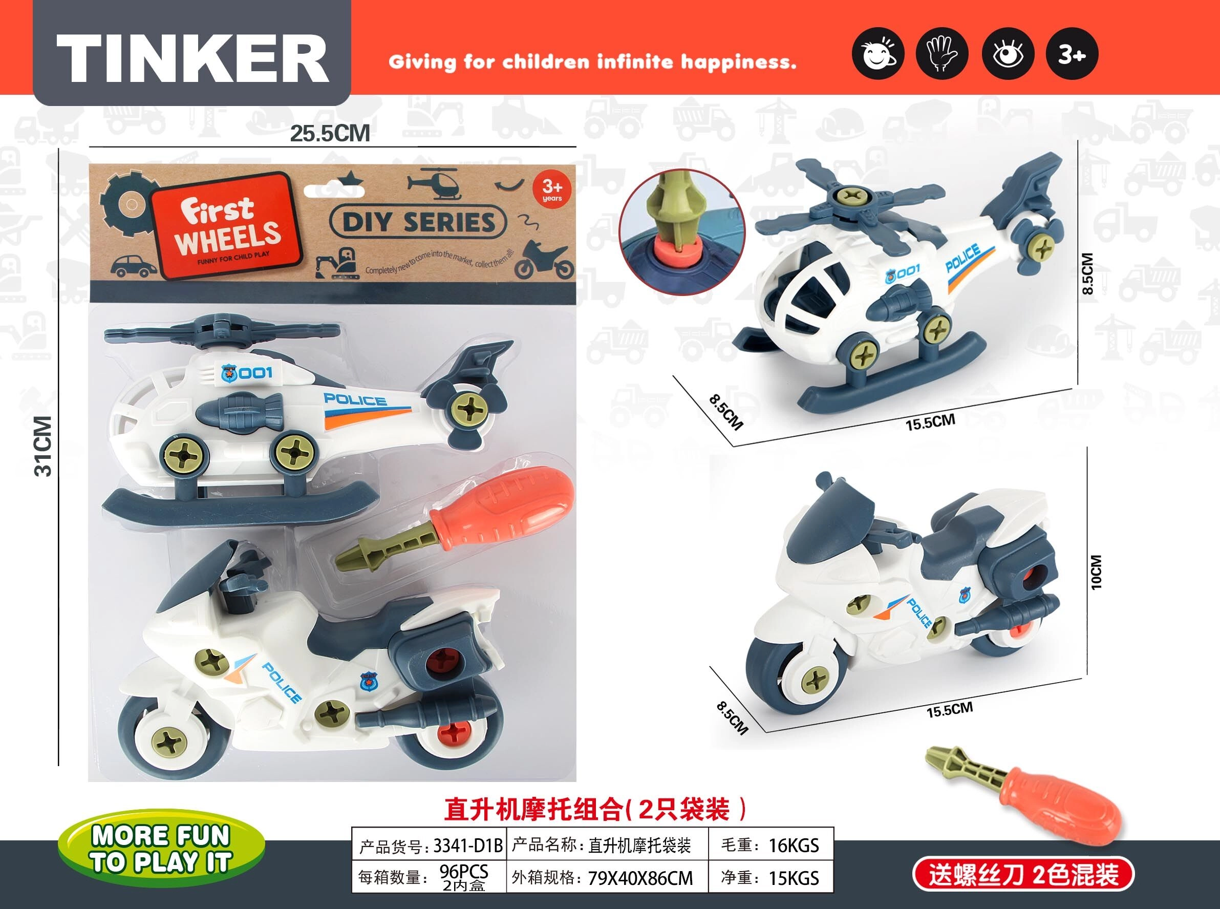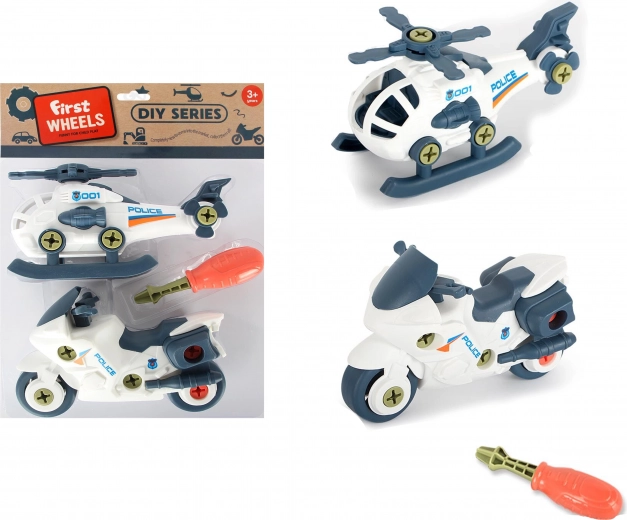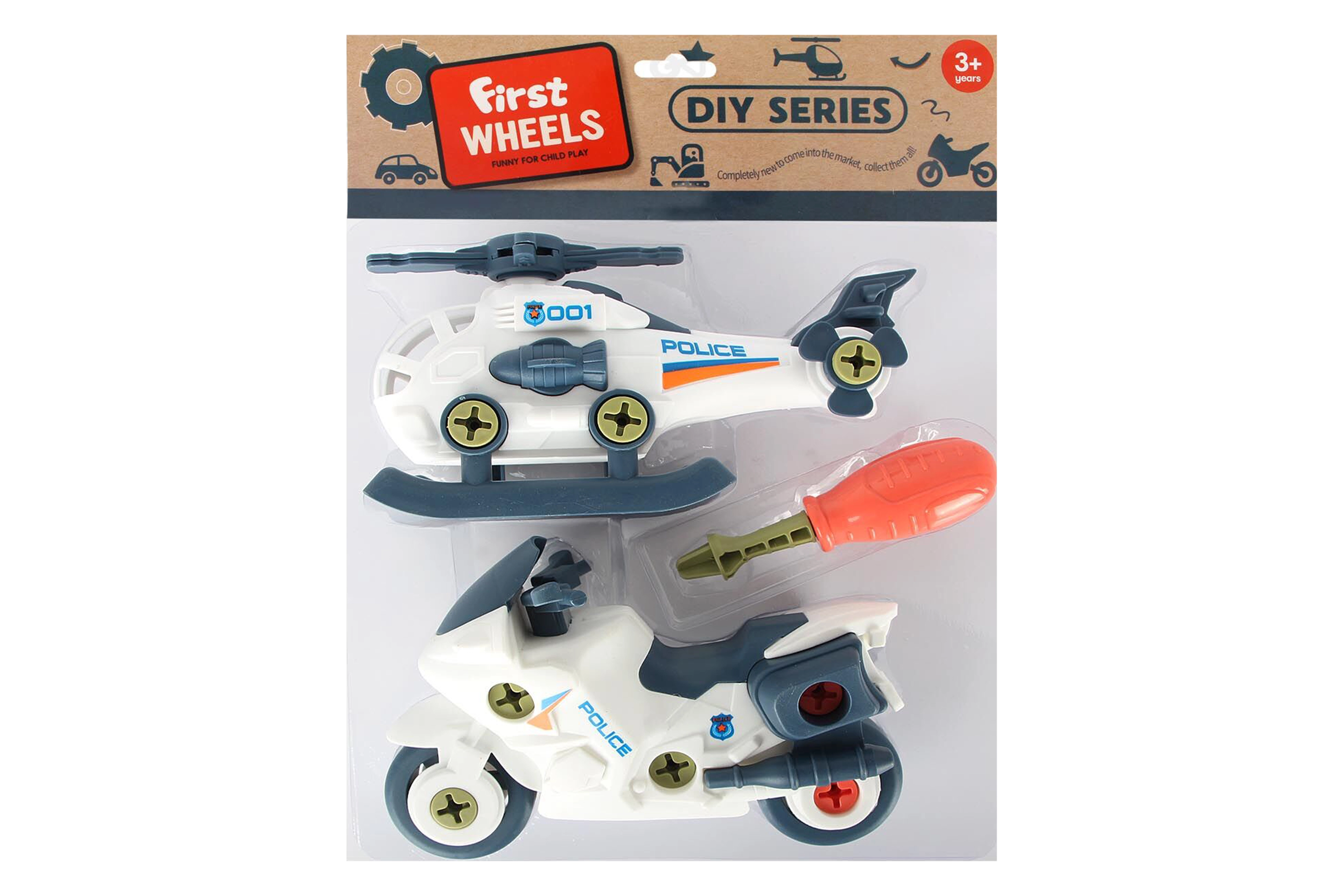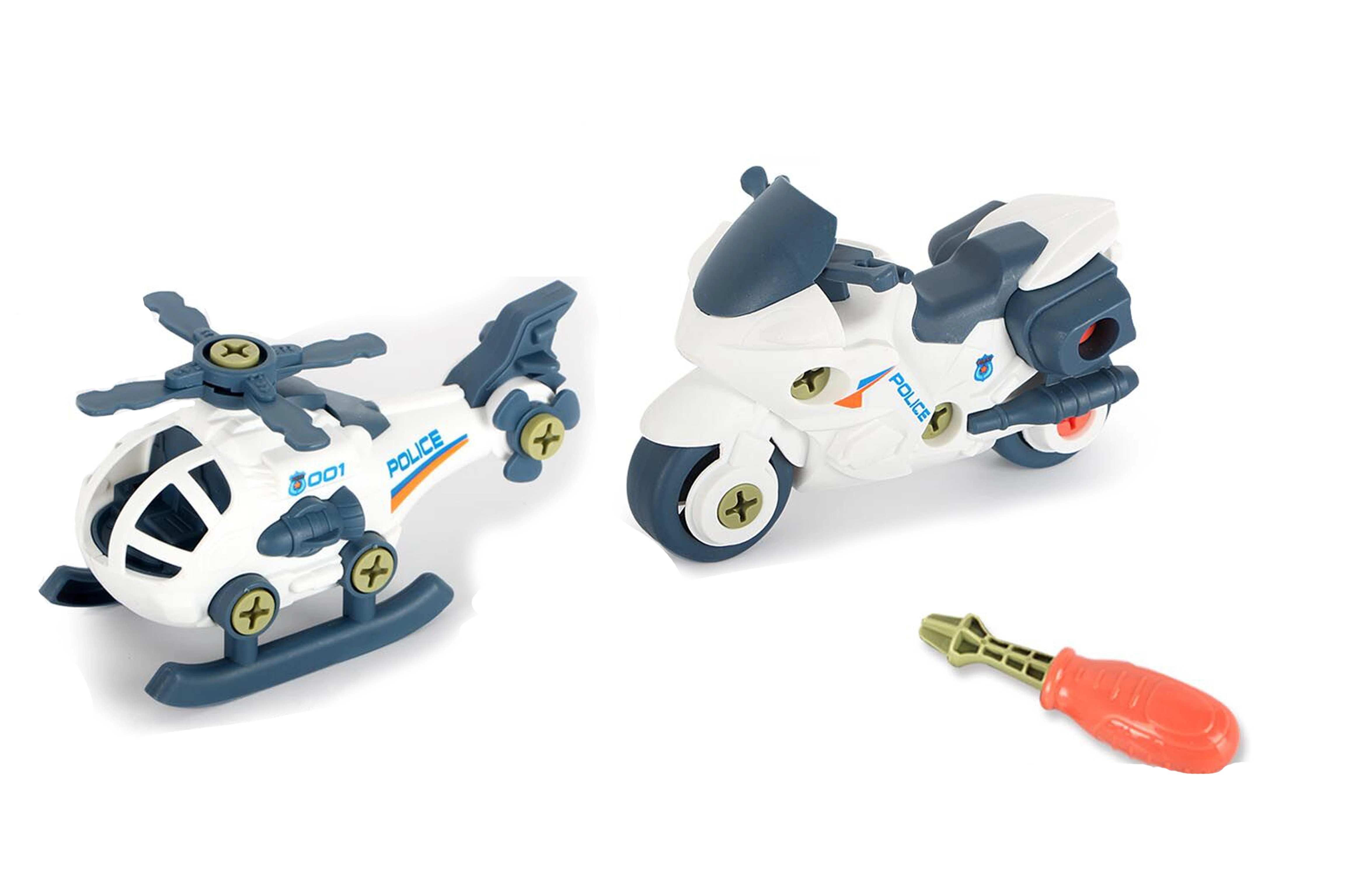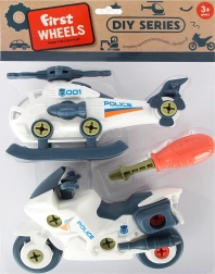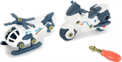Udforsk transportmidlernes verden med dette kreative og interaktive skruemonteringssæt. Pakken indeholder tre modeller: helikopter, motorcykel og en skruetrækker, som børn kan lege med og lære af samtidig.