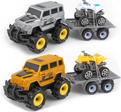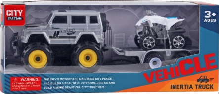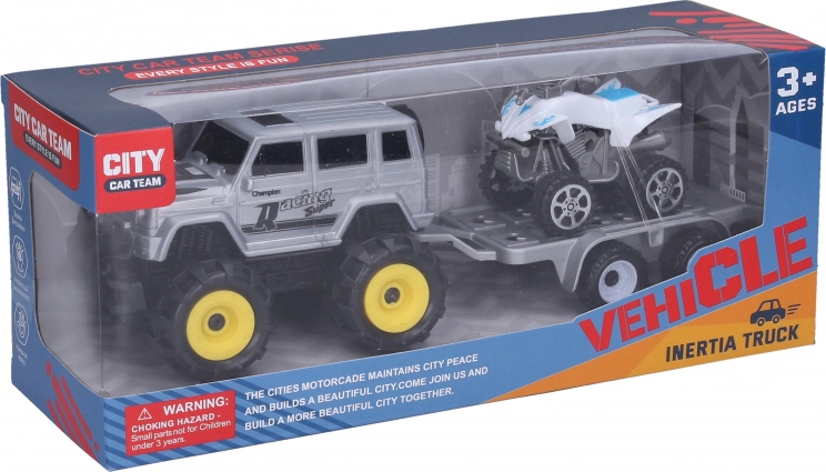 Terrængående bil med ATV 25 cm er det perfekte valg for enhver bil- og eventyrentusiast. Denne model giver en fantastisk oplevelse takket være svinghjul og friløbshjul på ATV'en, som gør legen let og sjov.