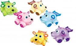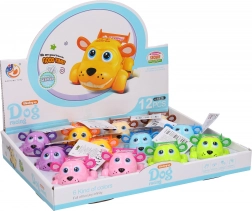 Sød træk hund af plast med en størrelse på 8 cm, ideel legetøj til små børn. Træk den blot op og se den bevæge sig.