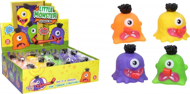 Monster med udspringende tunge i størrelsen 8 cm i 4 farver. Ideelt legetøj til børn.