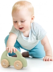 Dette minimalistiske trælegetøjsbil i en blid grøn farve er et fremragende valg som den første legeting til at udvikle bevægelse og koordination. Takket være den ergonomiske form kan små hænder nemt gribe den og skubbe den hen over gulvet, mens de stille hjul sikrer en glidende og uforstyrret bevægelse.