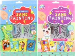 Skab smukt farvede billeder med det kreative sæt til sandmaling, som indeholder 4 ark klistermærker og 12 farver sand.