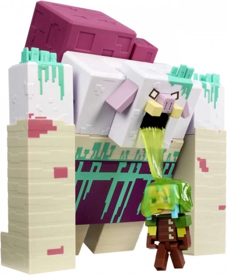 Udforsk spændende leg inspireret af Minecraft Legends, og "slug overfladen" med denne store, slanke angrebsfigur af Devastatoren. Sættet indeholder den uhyggelige, slimspyttende Devastator og en Vogter-figur, klar til at forsvare landet. Fastgør svampekimet til Devastatoren, fyld slimen på, og gør klar til angreb. Tryk derefter på kimet for at lade den spytte slim på den medfølgende Vogter. Fans vil sætte pris på de autentiske figurer inspireret af Minecraft Legends og skurkens store størrelse. Farver og dekorative elementer kan variere.