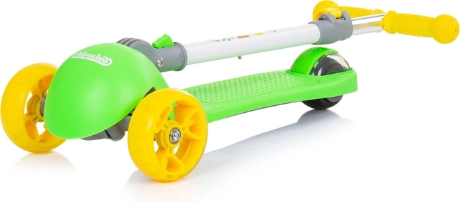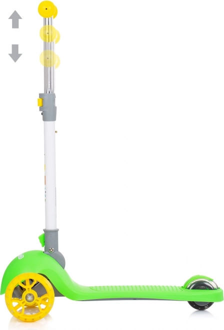 Giv børnene en sjov og sikker køreoplevelse med CHIPOLINO Funky i grøn‑gul udgave. Den lette aluminiumsramme gør det nemt at manøvrere, mens det brede skridsikre trinbræt og gummigreb giver tryghed under kørslen. Farvede LED-dioder i for- og baghjul lyser ved bevægelse og øger synligheden.