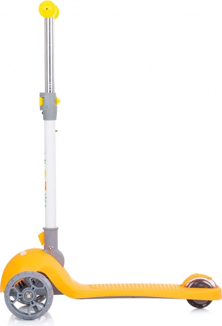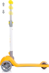 Løbehjulet Chipolino Funky Orange er et fremragende valg til børns første ture. Takket være den lette aluminiumsramme er det nemt at manøvrere, sammenklappeligt styr letter transport og opbevaring, og det brede, skridsikre trinbræt giver tryghed ved afsæt.