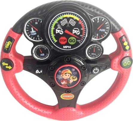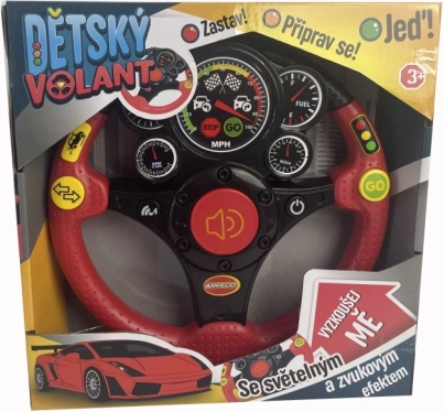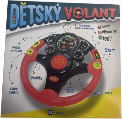 Interaktivt børnerat med en diameter på ca. 24 cm giver en realistisk køreoplevelse med tjekkiske replikker, lys- og lydeffekter samt to originale tjekkiske sange. Børn vil elske horn, motorstart, blinklys, sirenelyd, bremselyde og kommandoer som “Stop!” og “Gør klar og kør!” – ideelt til sjov og sikker rolleleg som chauffør.