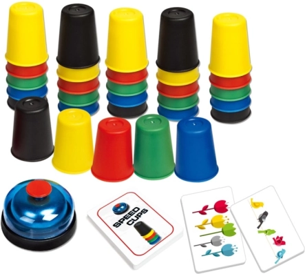 Hurtige Kopper er et dynamisk spil, der garanteret bringer latter og sjov ind i ethvert hjem. I æsken finder du 30 kopper, en klokke, 24 billedkort og en vejledning, så du kan begynde at spille med det samme.