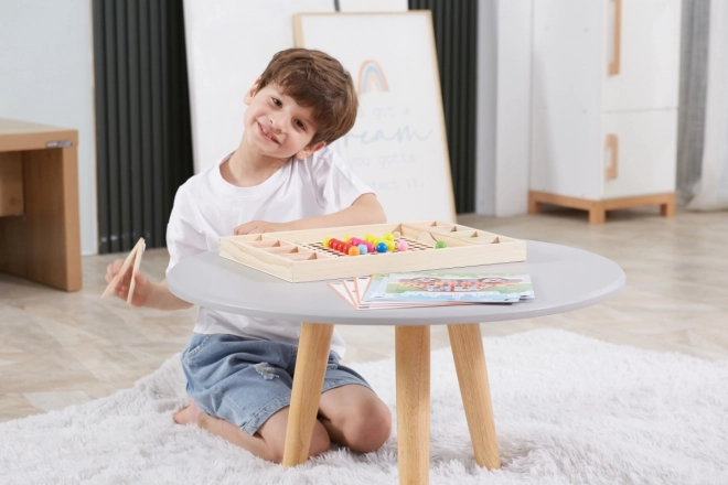 Træspillet "Fang og Sortér" fra Viga for børn fra 3 år, som ikke kun udvikler deres evne til at genkende farver og mønstre, men også hånd-øje-koordination og koncentration.