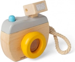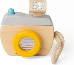 Dette trækamera med blitz er ideelt til de første skridt ind i fotografiens verden. Takket være gennemtænkte detaljer som “blitz”, knap og det markante objektiv kan børn fuldt ud nyde rolleleg og efterligne de voksne. Omhyggeligt fremstillet af kvalitets træ og suppleret med en tekstilsnor, tilbyder det sikker og holdbar underholdning hver dag.