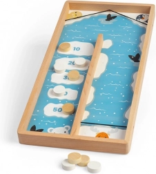 Dette attraktive træspil med pucke fra Bigjigs Toys bringer stemningen fra isen direkte til dit bord. Spillerne sender puckene hen over den glatte overflade og forsøger at standse dem i de mest fordelagtige pointfelter – hvert præcist glid giver flere point og mere spilglæde.