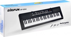 Elektronisk keyboard BF-950A med 61 tangenter er det ideelle valg for begyndere og børn. Det tilbyder 200 lyde, 200 rytmer, 70 demo-sange, optagelse og afspilning, indbyggede stereohøjttalere og et genopladeligt batteri til spil uden stikkontakt. Der medfølger mikrofon, nodestativ og display for nem betjening.