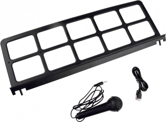 - Keyboard, mikrofon, strømkabel, nodestativ, vejledning