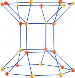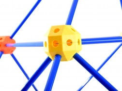 Blå stænger og polygonale forbindelser af hård plast holder formen og sikrer stabilitet selv ved større projekter.