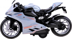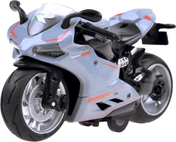 Motorcykel <\/span>med optræk er legetøjet for enhver lille og stor fan af tohjulede køretøjer. Køreren er lavet af metal med plastikdetaljer. Store hjul med gummidæk forbedrer trækket. En bonus er støddæmperen i baghjulet. Motorcyklen kører ved at spænde fjeder systemet. Bare placer motorcyklen på en flad overflade, træk motorcyklen tilbage og slip! Køreren vil køre fremad! Realistisk gengivet racer-motorcykel, der tilbyder masser af sjov for ethvert barn. Motorcyklen er meget omhyggeligt og æstetisk lavet.<\/span><\/p>