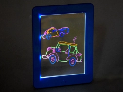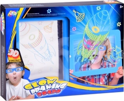 Lysende tavle, 3 kort med motiver (6 motiver), 4 neon-tuscher, klud, 3D-briller, sugekopper