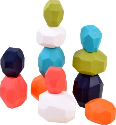 Takket være de flade sider af stenene kombinerer børn forskellige stablingskombinationer.