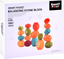Pakken indeholder 12 sten i forskellige størrelser, former og farver lavet af kvalitetsplast. Den største sten måler cirka 7,5 cm x 5 cm x 5 cm, og den mindste er cirka 5 cm x 3,5 cm x 3,5 cm. Sættet er ideelt som gave og til opbevaring af byggesten.