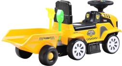 Den aftagelige trailer med holdere til opbevaring af den medfølgende lille rive og skovl understøtter fantasi og leg på byggepladsen eller i sandkassen.