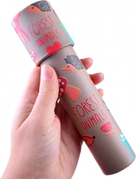 Den lette og holdbare konstruktion i pap med glade skovdyrsmotiver sikrer et behageligt greb og sikker leg. Kalejdoskopet er perfekt til at udvikle kreativitet, sanseoplevelse og tålmodighed.