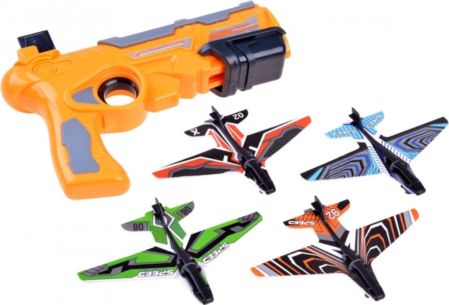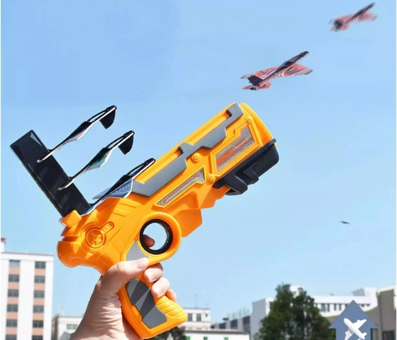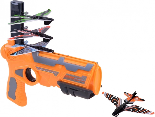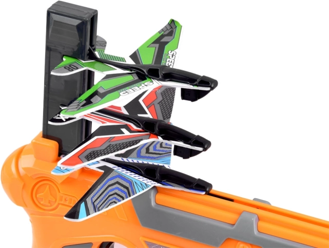 Den store flyaffyringspistol er vores nyeste tilbud. Affyringsanordningen har et magasin, der kan lades med tre fly. For at skyde et enkelt fly hver gang, skal pistolen lades igen. Efter hver affyring, vil magasinet skubbe frem, så du kan affyre op til tre fly i én runde. Våbnet er helt lavet af let plast og flyene er af EPP-skum. På grund af deres lethed, kan flyene svæve flere meter væk. Enhver fan af skudkonkurrencer, der har sådan en affyringsanordning, kan træne de længste flyvninger og derefter arrangere konkurrencer med venner. <\/span><\/p>