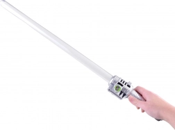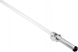 Dette lyssværd med realistisk sølvhåndtag og rød knap giver børn autentiske oplevelser fra galaktiske dueller. Når det aktiveres, tændes grønt LED-lys, og lydeffekter starter, hvilket øger spændingen og underholdningen under legen.