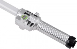 Ergonomisk sølvfarvet greb med knap til aktivering af lys og lyd sikrer et sikkert greb og intuitiv brug.