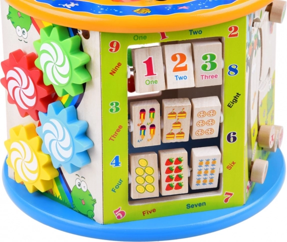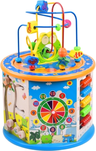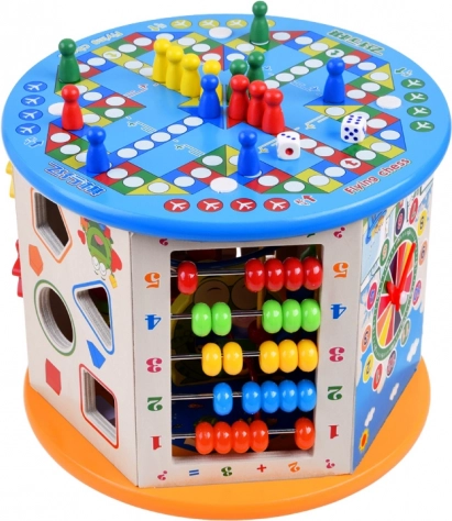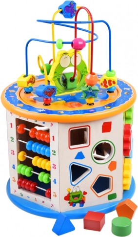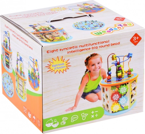 Denne træuddannelsesterning tilbyder et bredt udvalg af aktiviteter, som hjælper dit barn med at tilegne sig nye færdigheder og viden. Den inkluderer mange funktioner, herunder en perlelabyrynth, farverigt kugleramme og formudskæring. Alle elementer er designet til små hænder, hvilket sikrer sikker og komfortabel leg.