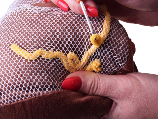 Takket være netlommen og hæklenålen kan børn sikkert trække garnet igennem og skabe en pelsagtig overflade på puden uden syning.