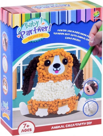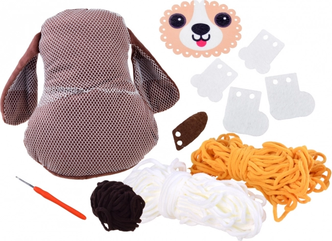 Kreativ pude i form af en hund til børn, der elsker at skabe uden nål og tråd. Blød, behagelig og sikker aktivitet, hvor du med den medfølgende hæklenål nemt trækker garn gennem en netlomme og skaber en pelsagtig overflade. Den færdige pude bliver en smuk dekoration og en krammevenlig pude-legetøjsfigur til børneværelset.