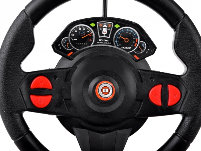 Intuitivt rat med knapper og to pedaler til gas/bremse giver børn en realistisk kørefornemmelse og præcis kontrol over køretøjet.