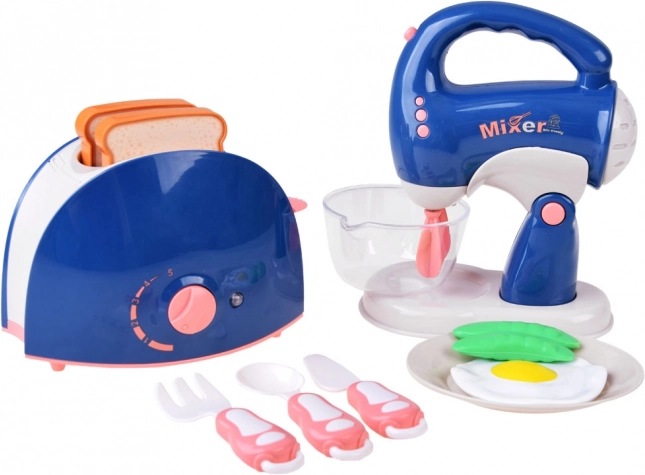 Børne køkkensættet er det perfekte valg for alle små kokke. Mikser og brødrister er lavet af holdbar plastik i blødt farvet design, hvilket sikrer sikker og behagelig leg. Dette sæt bringer ekstra realisme til ethvert lille køkken takket være troværdige lydeffekter og belysning, der signalerer tænding af apparaterne.
