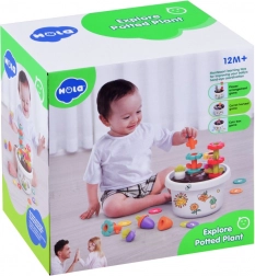 Hver del af legetøjet tilbyder forskellige muligheder for børn at lære grundlæggende farver og former. Alle dele kan nemt opbevares i blomsterkassen, hvilket sparer plads og holder orden.