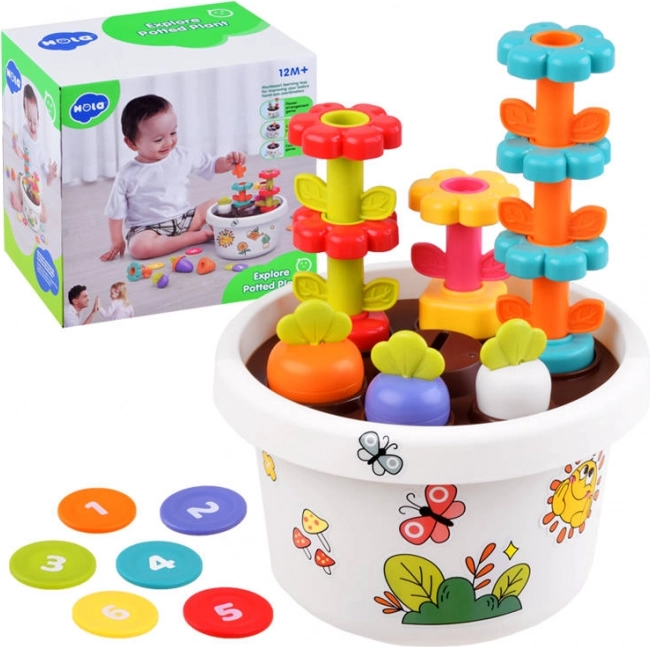 I midten af blomsterkassens base er der en åbning til indsættelse af markører, hvilket forbedrer hånd-øje-koordinationen. Sættet inkluderer også farverige klistermærker til dekoration af blomsterkassen, hvilket udvikler børns kreativitet.